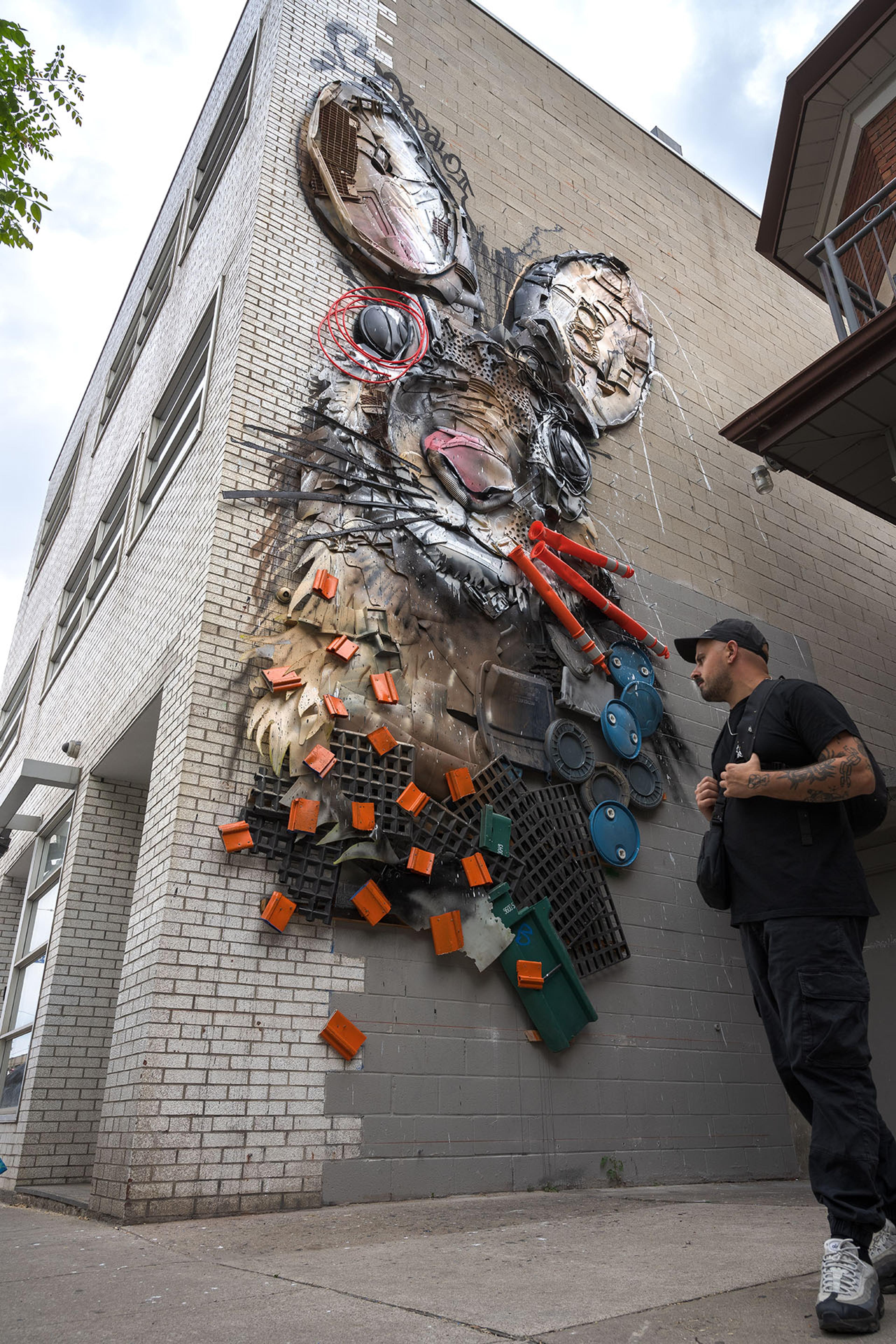In the heart of Toronto’s vibrant art scene, an extraordinary installation has captured the attention of locals and visitors alike. Bordalo II, the renowned Portuguese artist celebrated for his innovative approach to recycling and environmental consciousness, has brought his captivating artwork to Dundas Street West. The “Eastern Cotton Tail” installation is not only a testament to his artistic prowess but also a powerful statement about our relationship with waste and nature. In this blog post, we delve into the story behind this remarkable creation and its significance in the realm of modern art and environmental activism.